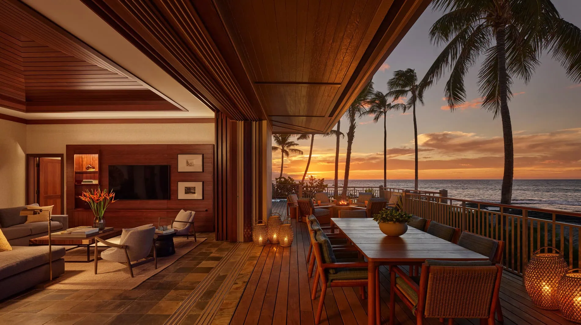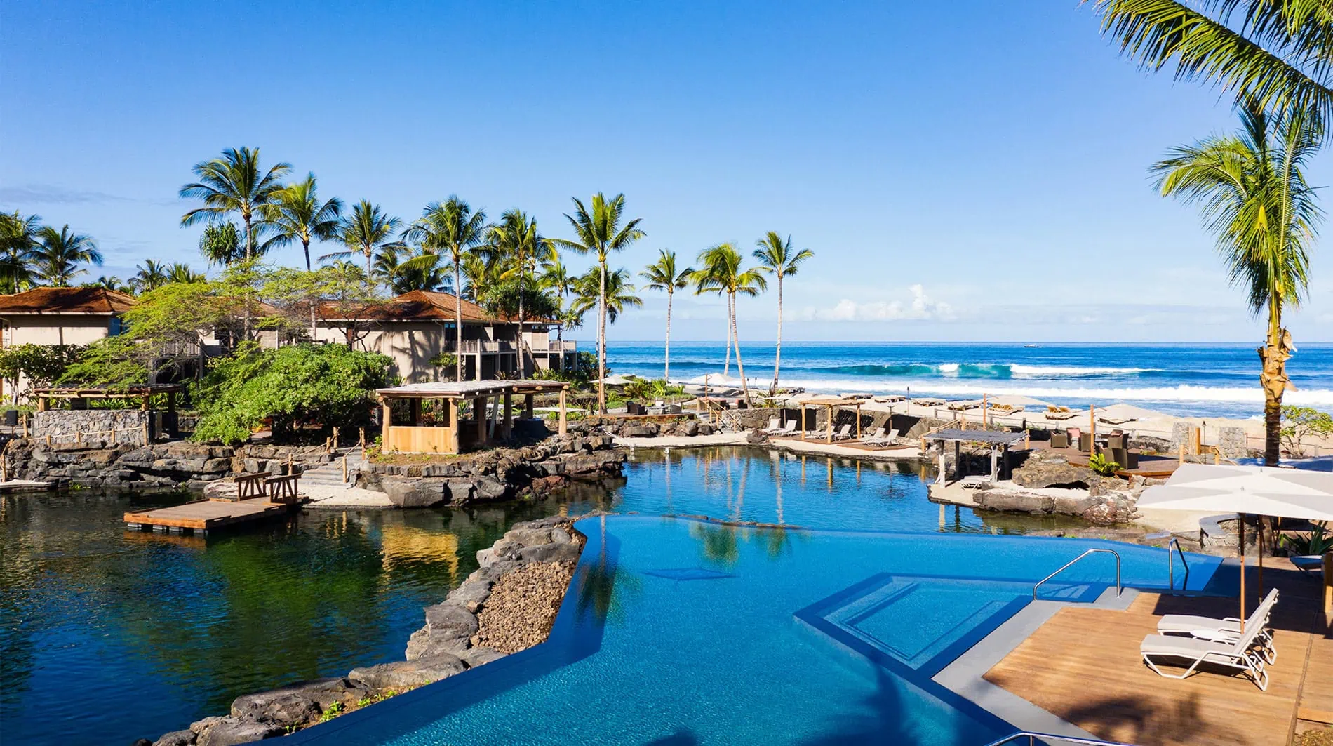 Set on the Kona-Kohala coast of Hawaii’s Big Island, Four Seasons Resort Hualalai captures the essence of island living with its beachfront location, lush landscaping, and bungalow-style accommodations. Recently refreshed, the resort offers an authentic Hawaiian feel paired with modern luxury. Guests can swim in a natural ocean pool, relax in one of seven distinct pools, or play a round on the Jack Nicklaus–designed golf course. With oceanfront dining, cultural experiences, and a renowned spa, Hualalai delivers a resort experience that blends natural beauty, Hawaiian tradition, and refined service.